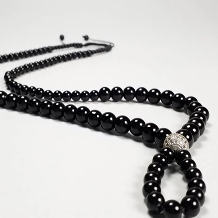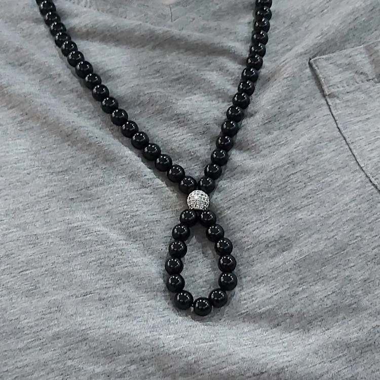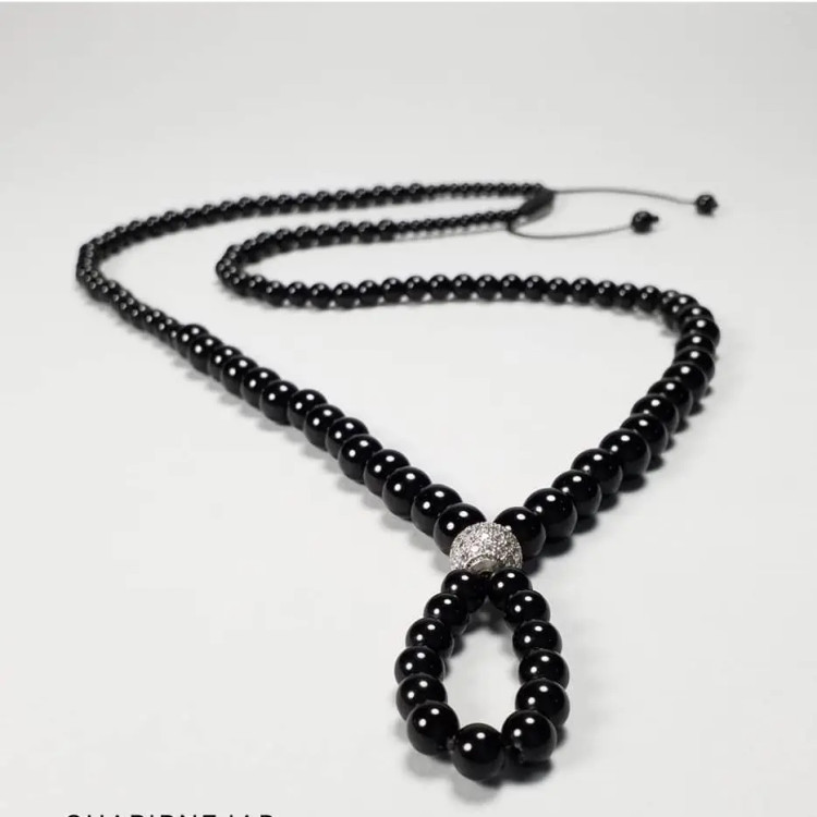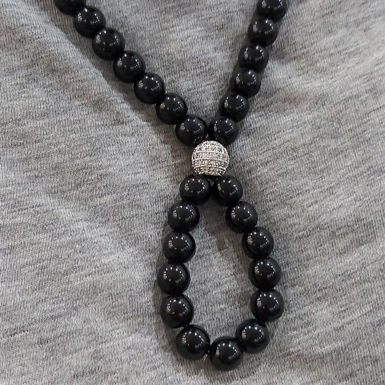 گردنبند اونیکس براق با گوی سوارسکی نگین دار زیورآلات دستساز زنانه مردانه