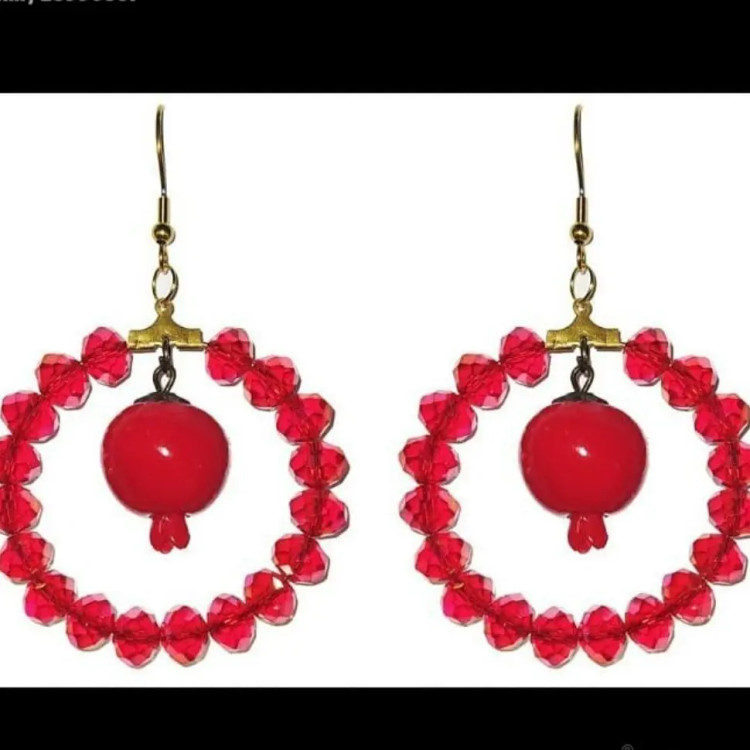 گوشواره از کریستال و آویز انار درست شده است ⚜ مناسب شب یلدا و در مهمونی خوش بدرخشید 🤩
