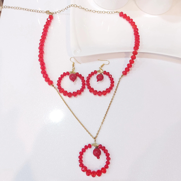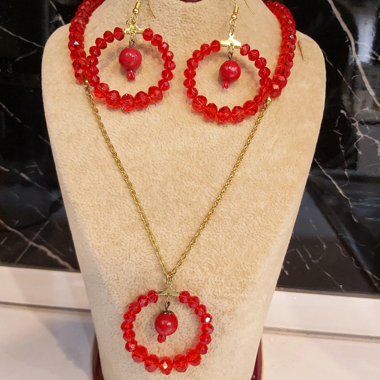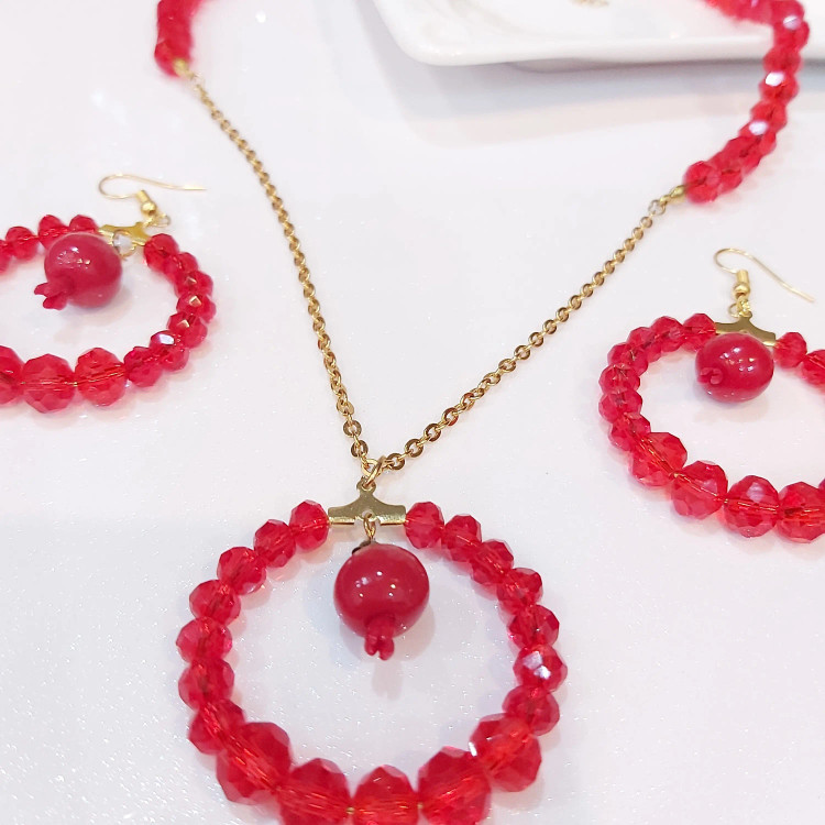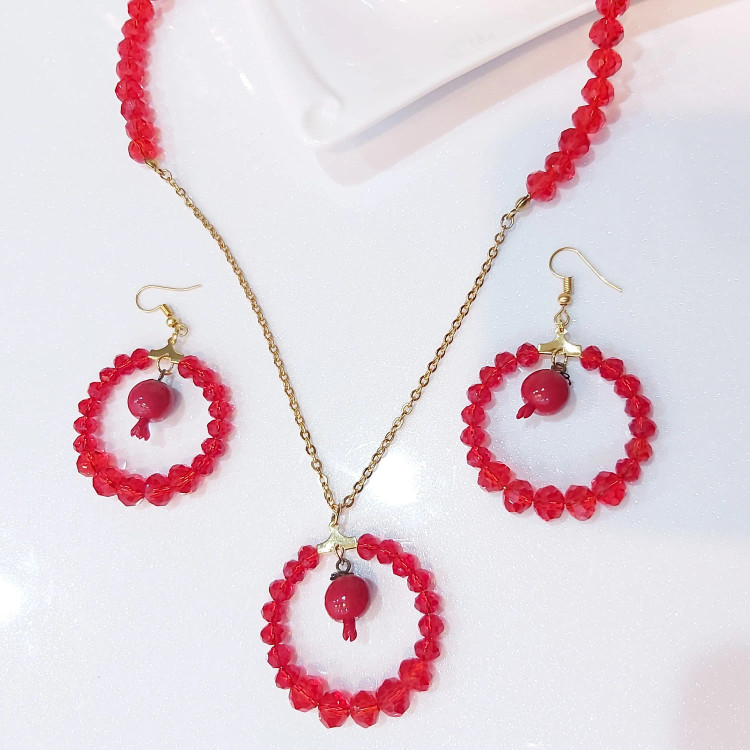 ست گردنبند و دستبند و گوشواره انار ست یلدایی زنانه دخترانه