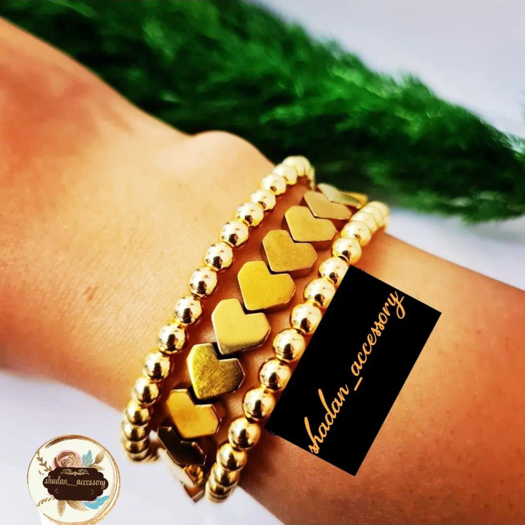 ست دستبند تمام حدید طلایی زنانه اکسسوری رنگ ثابت دخترانه