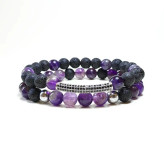 دستبند مردانه سنگ آمیتیست و لاوا و پلاک سوارسکی اصل طبیعی