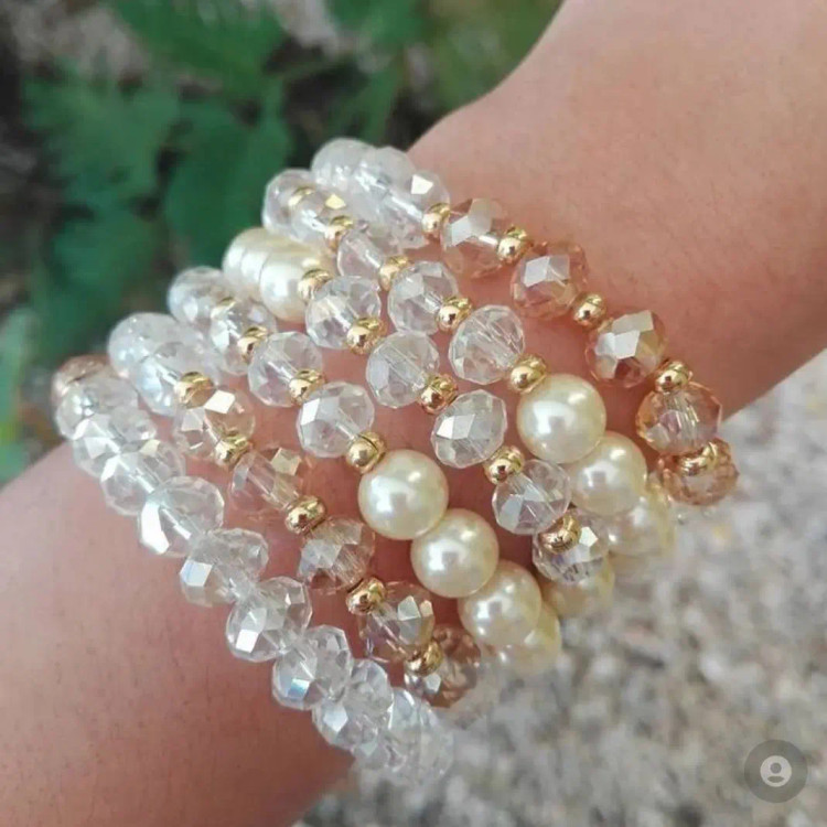 ست دستبند کشی شش تایی کریستال و حدید و مروارید اکسسوری دستساز زنانه دخترانه