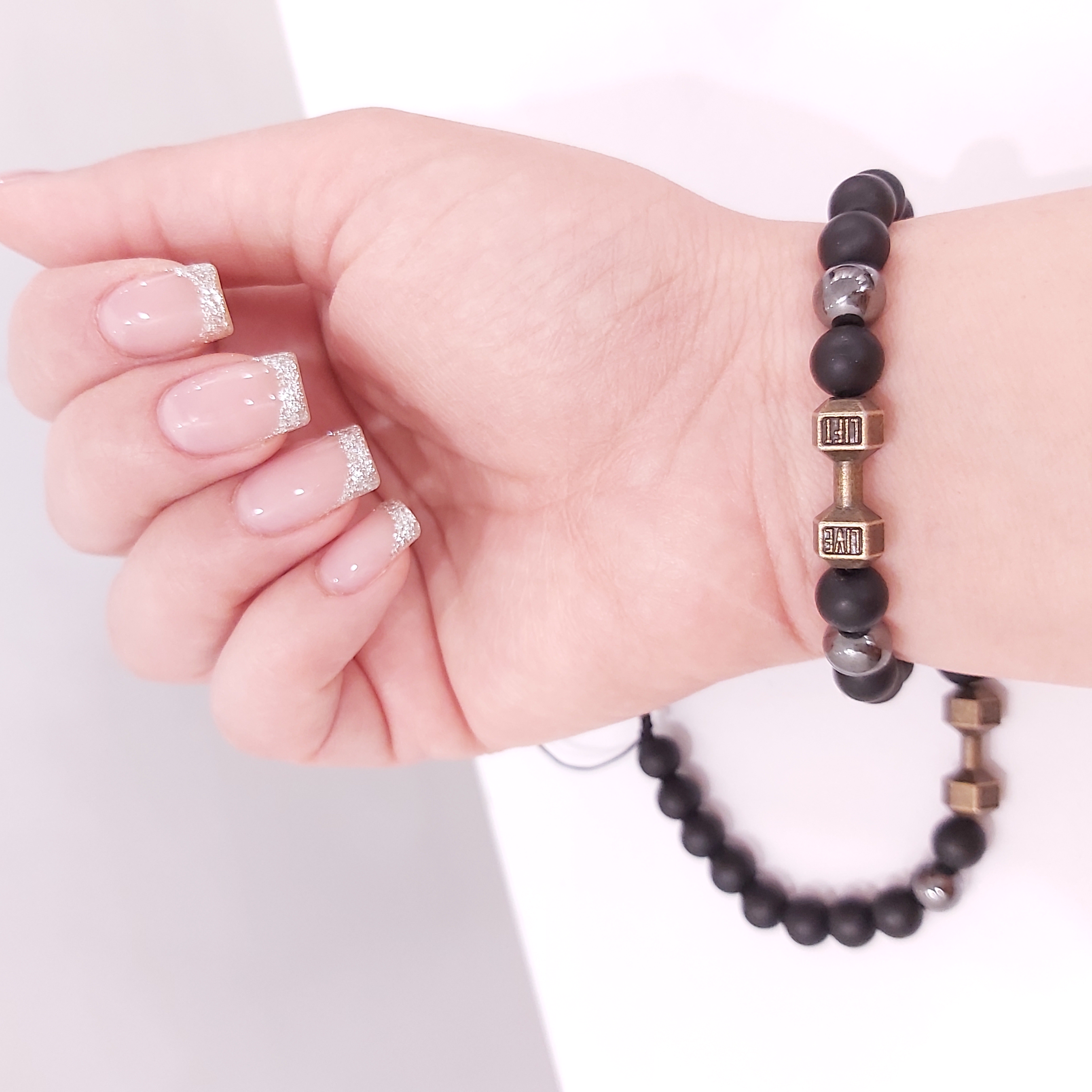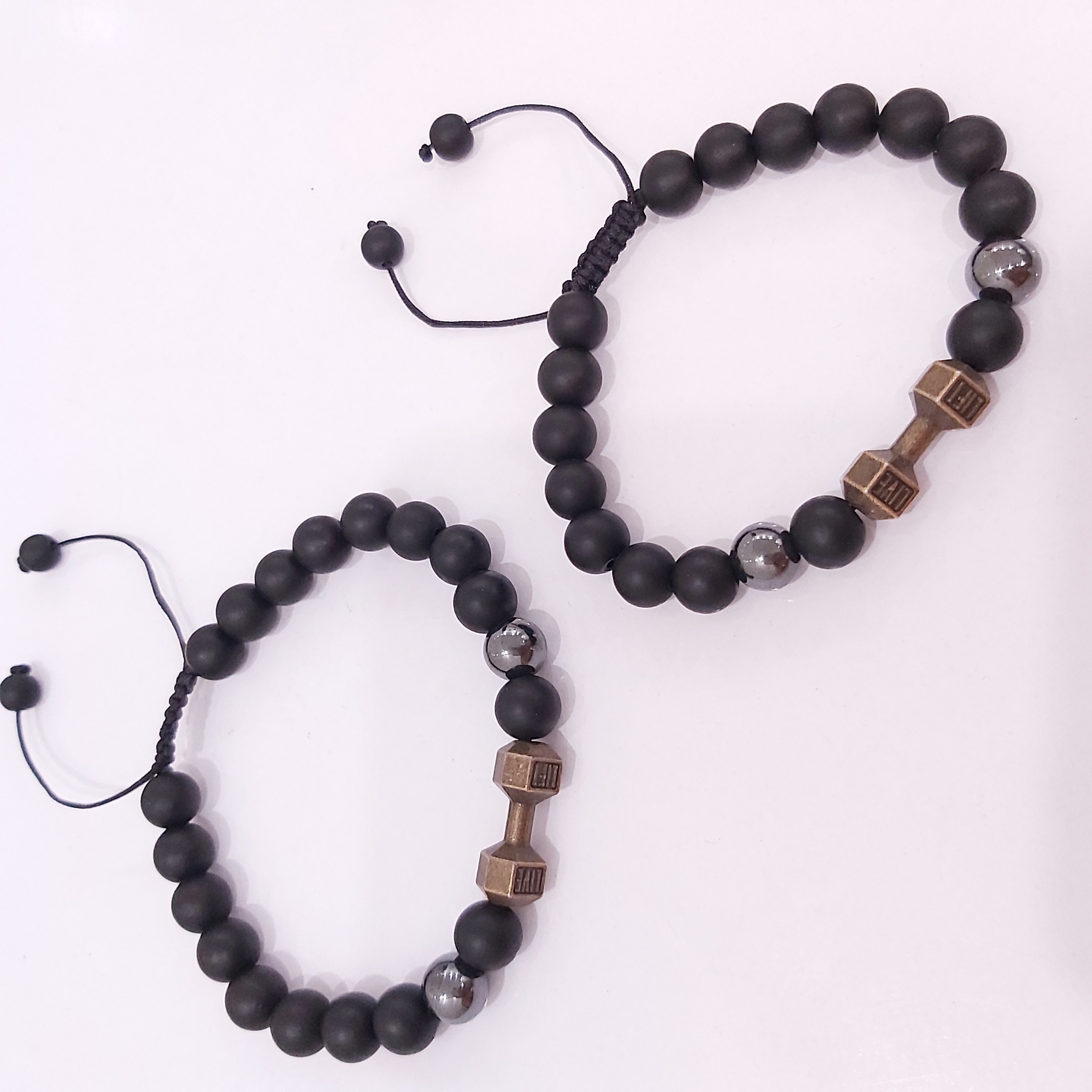 دستبند با پلاک دمبل جنس حدید و مهره های اونیکس مشکی مات و حدید گرد دودی که بصورت گره کشویی جهت راحتی استفاده و فیکس کردن دور مچ دست درست شده است. مناسب هدیه دادن 🎁 مناسب آقایان و ورزشکاران و بدنسازان ⛹️🏋️🏃🏻♂️