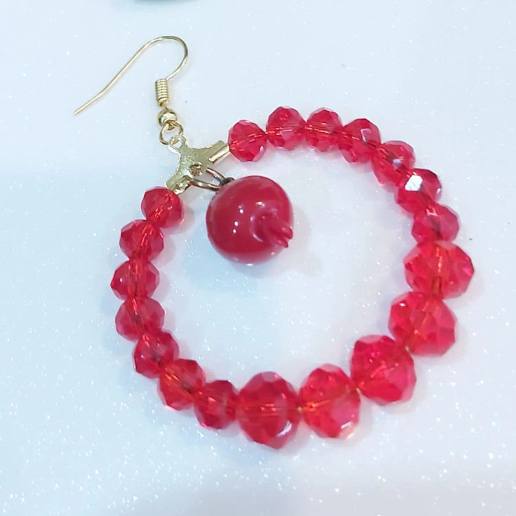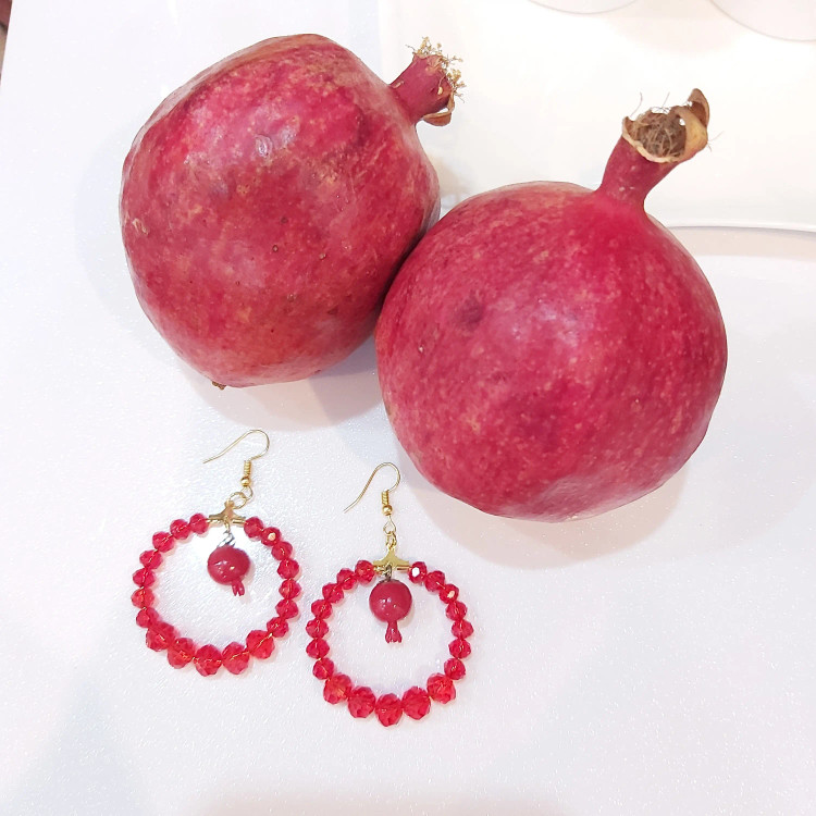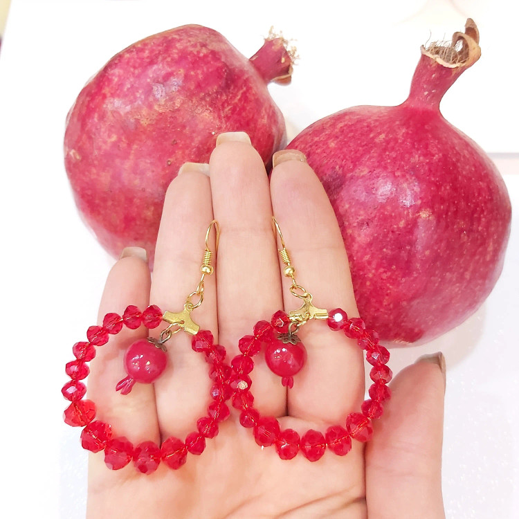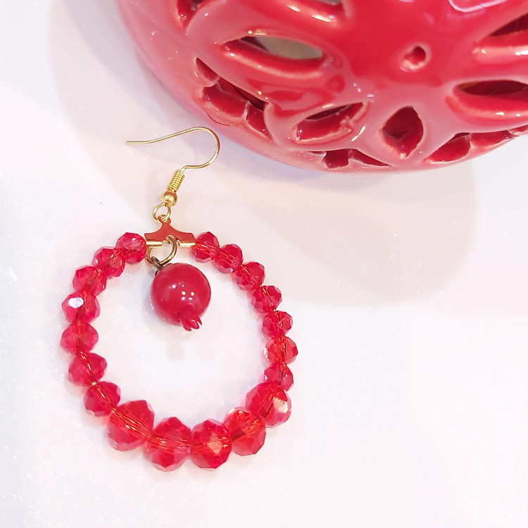 گوشواره حلقه ای از آویز انار و کریستال های قرمز درست شده است ⚜ مناسب خانم ها و دختران 🙋🏻♀️ ⚜ مناسب شب یلدا