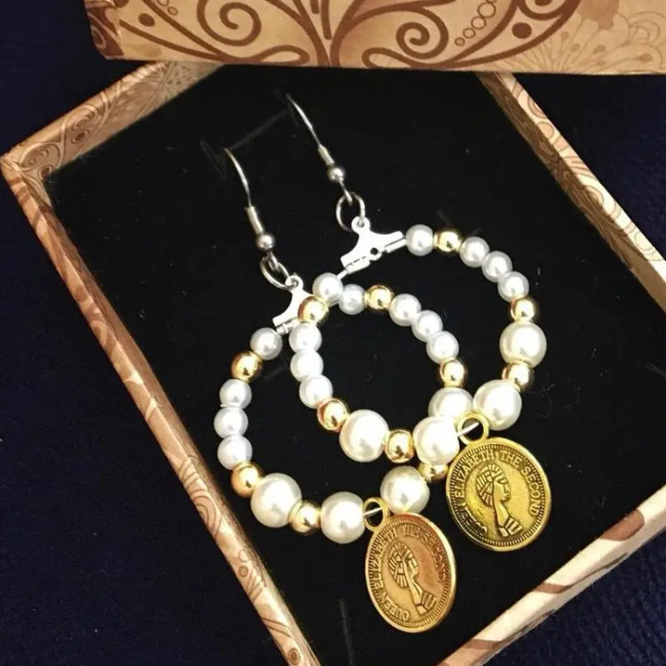 گوشواره مروارید حلقه ای اسپرت سفید و طلایی اکسسوری زیورآلات زنانه دخترانه