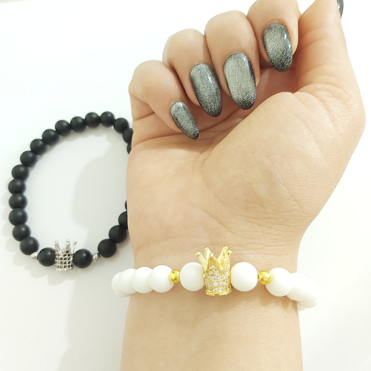 ست دستبند اونیکس و تاج سوارسکی نگین دار اصل رنگ ثابت زنانه مردانه