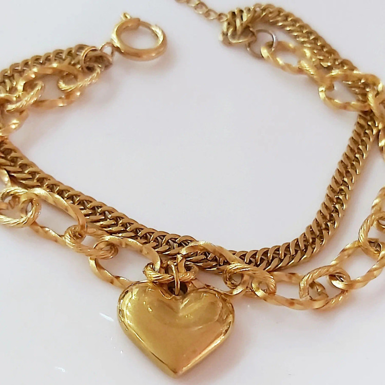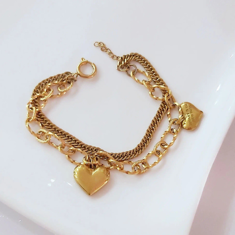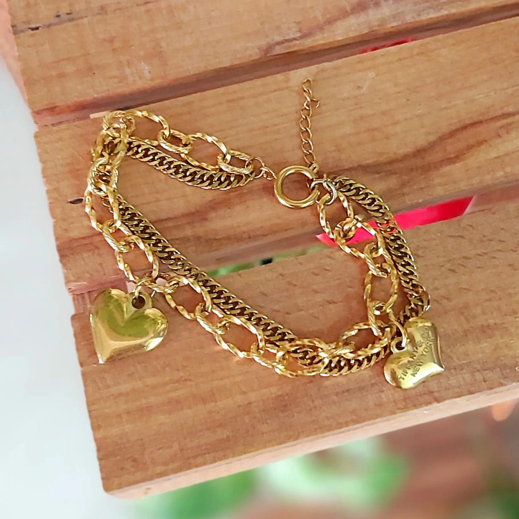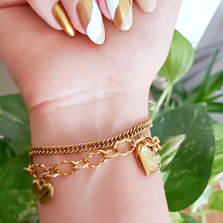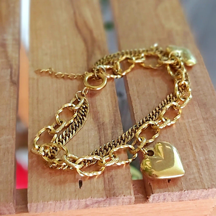 دستبند از دو لاین زنجیر درست شده است با دو آویز قلب برجسته استیل با قفل ملوانی میباشد و دارای زنجیر سایز ⚜ دستبند کاملا استیل میباشد و رنگ ثابت میباشد ⚜ مناسب استفاده روزانه میباشد ⚜ مناسب خانم ها و دختران خوش پوش و خوش سلیقه 🙋🏻♀️ ⚜ طول دستبند متناسب با دور مچ مشتری