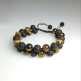 دستبند از دو ردیف سنگ چشم ببر و لاوا درست شده است. ⚜مناسب آقایان و پسران 🙋🏻♂️ ⚜ متناسب با دور مچ مشتری آماده و ارسال میگردد ⚜ دستبند با بافت خاصی درست شده است و کاملا منحصر بفرد و خاص