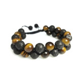 دستبند مردانه سنگ دو ردیفه چشم ببر و لاوا