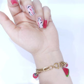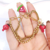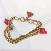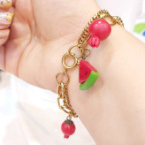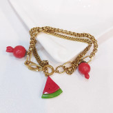 دستبند زنانه دو ردیفه استیل با آویز انار و هندوانه رنگ ثابت