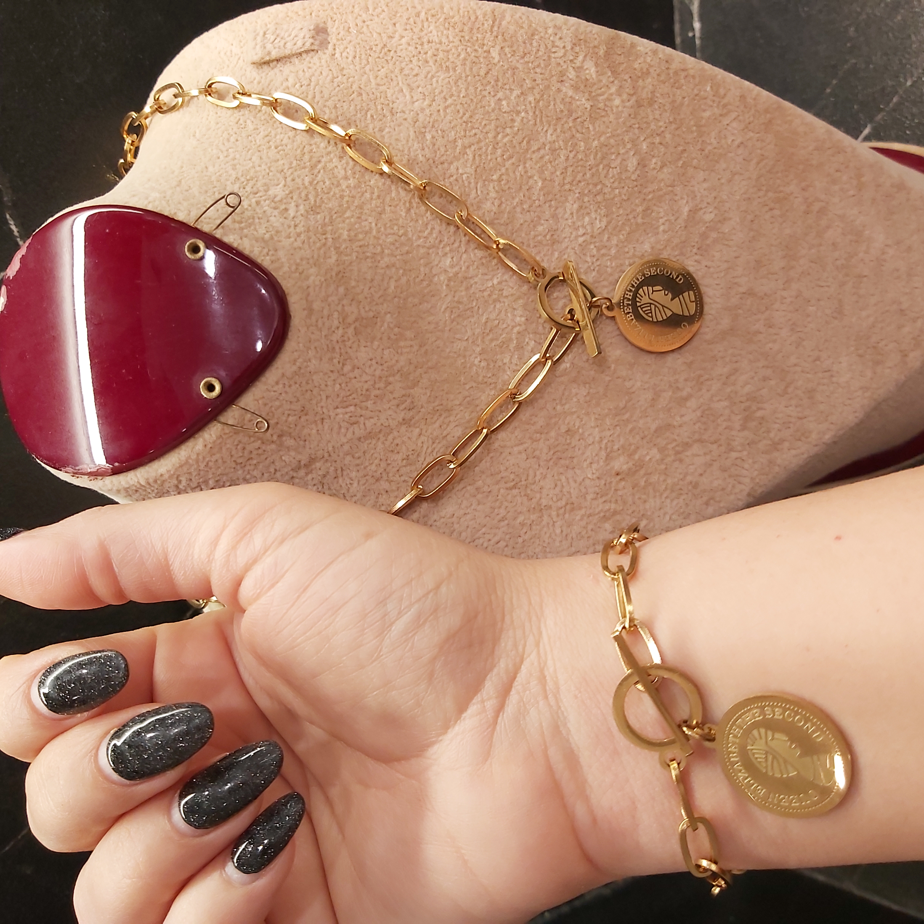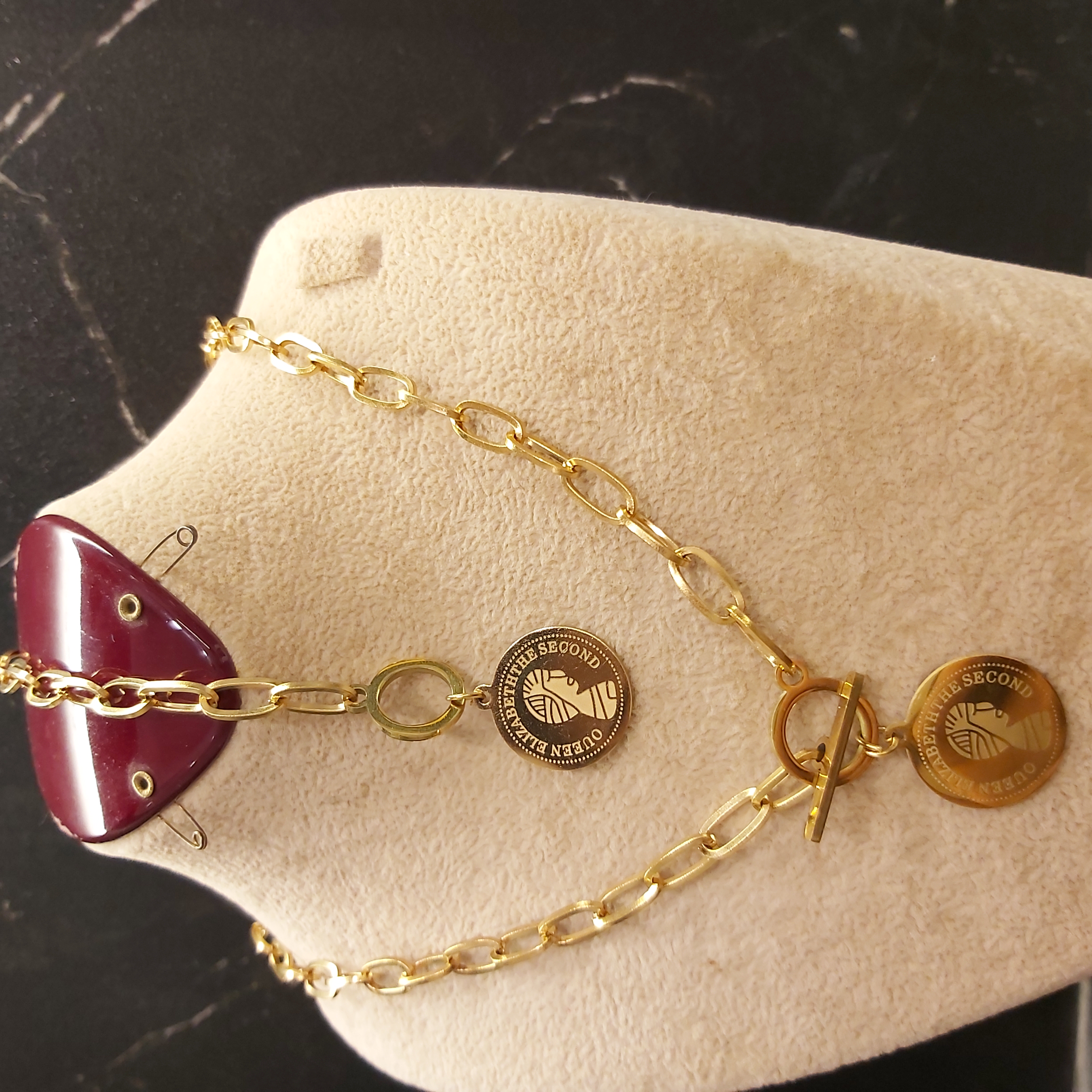 ست گردنبند و دستبند از زنجیر باگتی ⛓️ و قفل تی و سکه الیزابت و اتصالات استیل درست شده است که همگی رنگ ثابت میباشند. مناسب هدیه دادن 🎁 مناسب خانم ها و دختران شیک پوش و خوش سلیقه این روزا خیلی زیورآلات و اکسسوری های رنگ ثابت و استیل مد شده و مشابه طلا میباشد و مناسب استفاده روزمره 🚶🏻♀️و حتی میتونید باهاش حمام 🧖🏻♀️ و استخر 🏊🏻 هم برید.