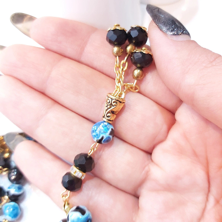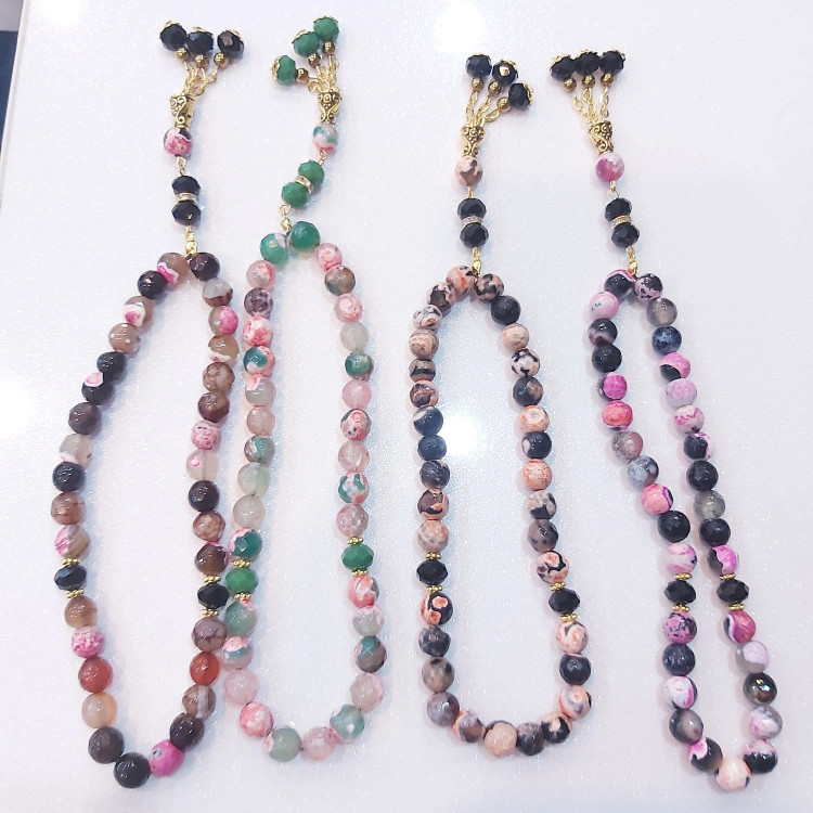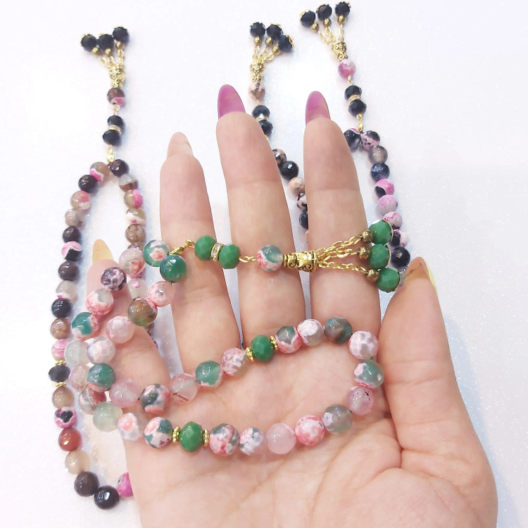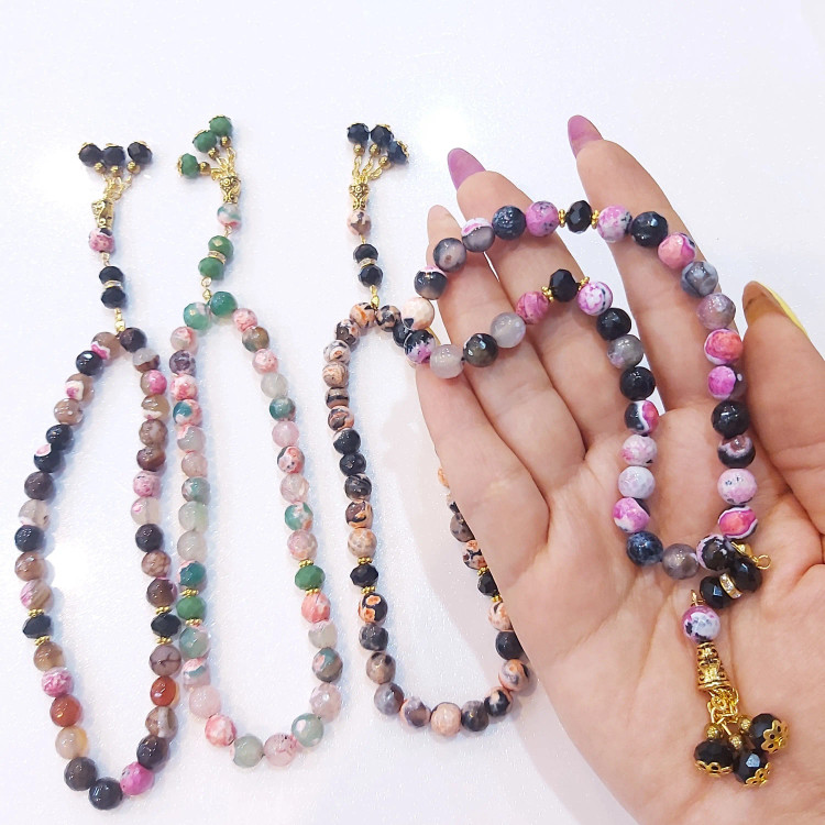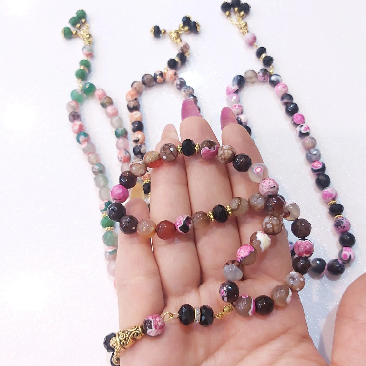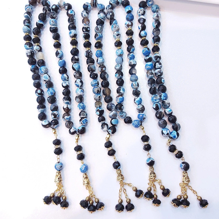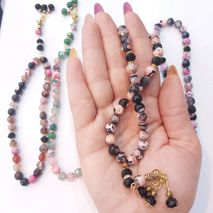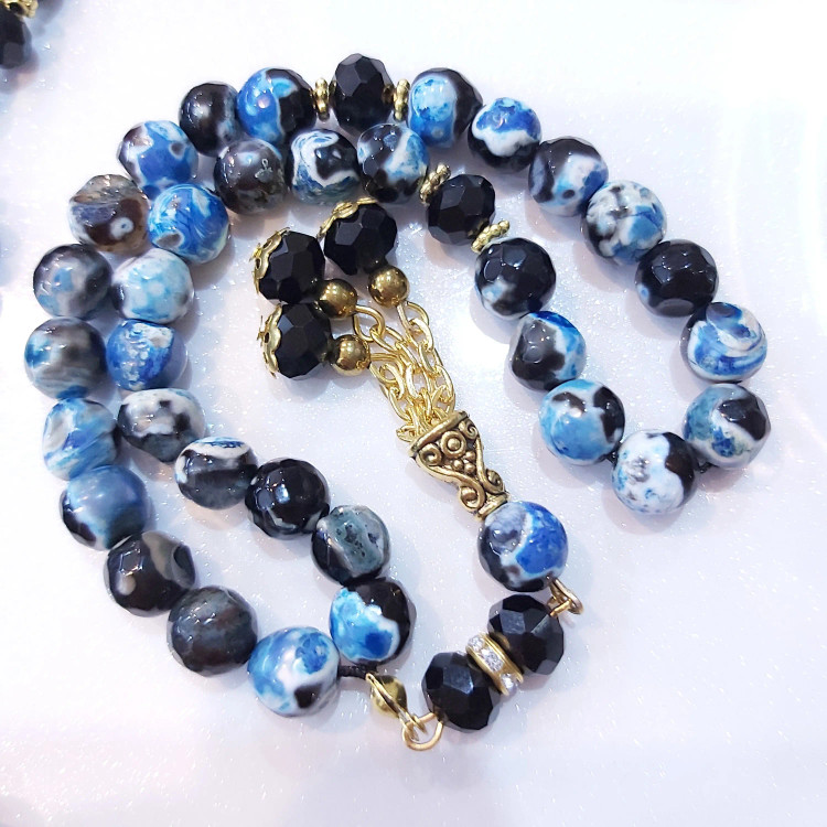 تسبیح ۳۳ دانه از سنگ عقیق برزیلی سایز ۸ و کریستال سایز ۸ درست شده است ⚜ مناسب هدیه دادن به عزیزان تان ⚜ تسبیح از سنگ اصل درست شده است