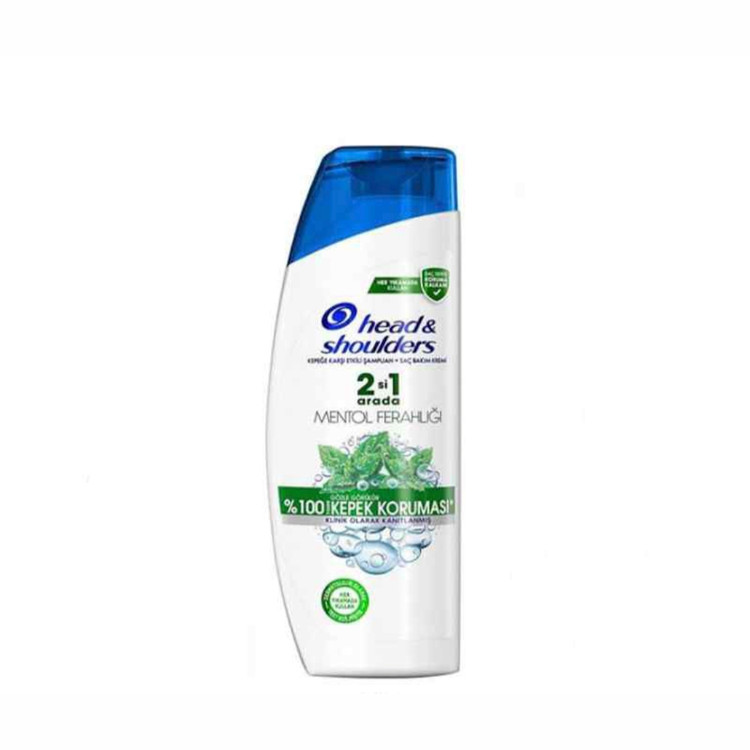 شامپو هد اند شولدرز نعنایی 2 در 1 مدل Mentol Ferahligi حجم ۳۵۰ میل با قدرت شویندگی مطلوب، ضمن اینکه پوست سر و تارهای مو را تمیز و پاک می کند با حفظ رطوبت طبیعی آن، شوره سر را تا 100 درصد از بین می برد و نتیجه استفاده مداوم از آن، موهایی زیبا و سالم برای مصرف کننده در پی خواهد داشت.این محصول با علائم شوره سر از جمله خارش، خشکی پوست سر و چرب شدن آن مبارزه می کند و به طور چشم گیری شوره سر را از بین می برد.