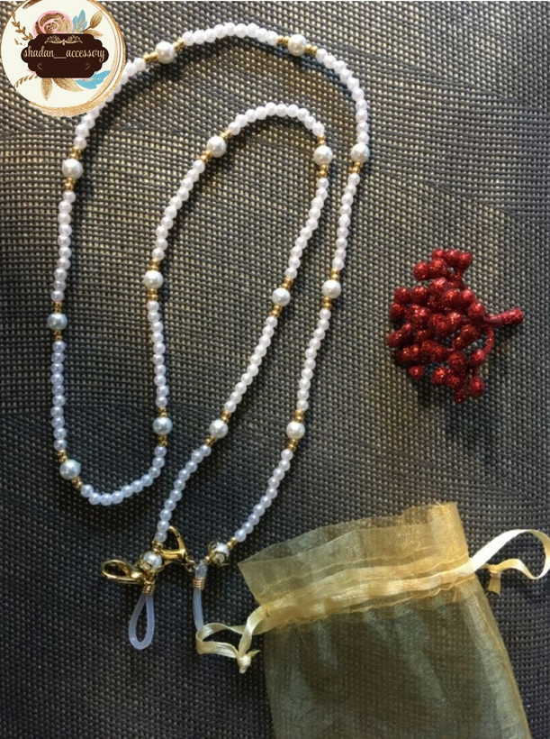 بند عینک مرواریدی سفیدی