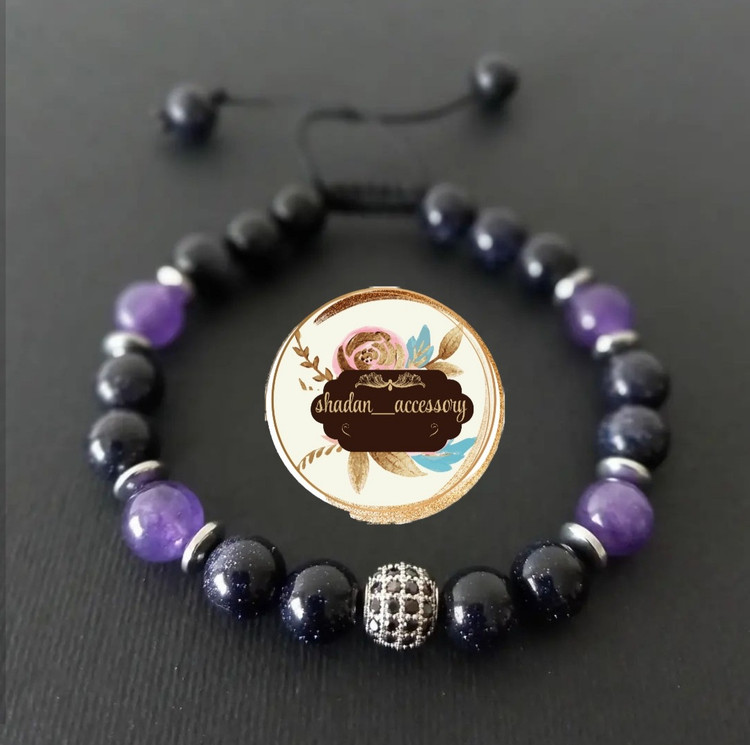 دستبند از سنگ آمیتیست اصل و حدید واشری نقره ای و دلربا سورمه ای درست شده است. ⚜ دستبند متناسب با دور مچ مشتری آماده و ارسال میگردد ⚜ هم مناسب خانم ها هم آقایان ⚜ سنگ آمتیست خشم، طغیان، ترس، تشویق، نگرانى و اضطراب را از بین می برد. سنگ آميتيست اراده را تقویت می نماید .
