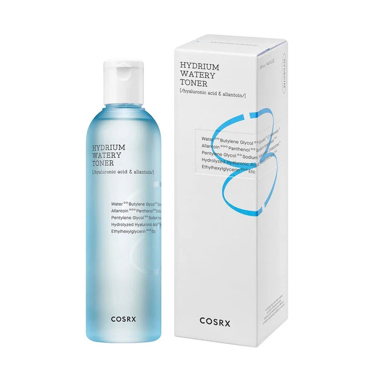 تونر COSRX صرفا حاوی مواد مرطوب کننده لازم با 13 ماده مفید دیگر است. این محصول قدرت رطوبت رسانی بالای خود را از کمپلکس Hydrium Synergy-8 که از شش نوع اسید هیالورونیک، دی پانتنول و آلانتوئین تشکیل شده است، بهره میگیرد. مجموعه ای از این ترکیبات آبرسان و مرطوب کننده، پوست را با رطوبت پر می کنند و آن را تا مدت طولانی هیدراته نگه میدارند.