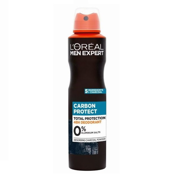 اسپری ضد تعریق مردانه بدون آلومینیوم لورال Loreal Carbon Protect 0% Aluminium 250Ml